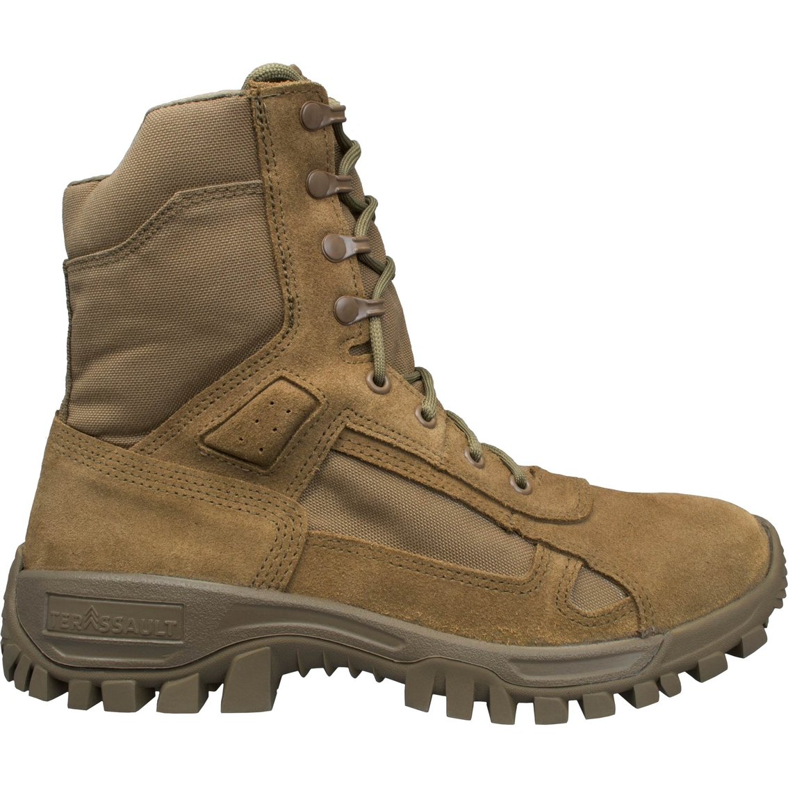 The T-1 Boot has been developed to provide maximum reliability, durability and comfort to our fighting personnel in a distinctive design. McRae worked hand-in-hand with Vibram USA to develop a proprietary outsole and midsole package to optimize stability and performance on almost all rugged surfaces. Durable 8-inch hot weather Terassault with Vibram T-1 outsole. Style: 8177.