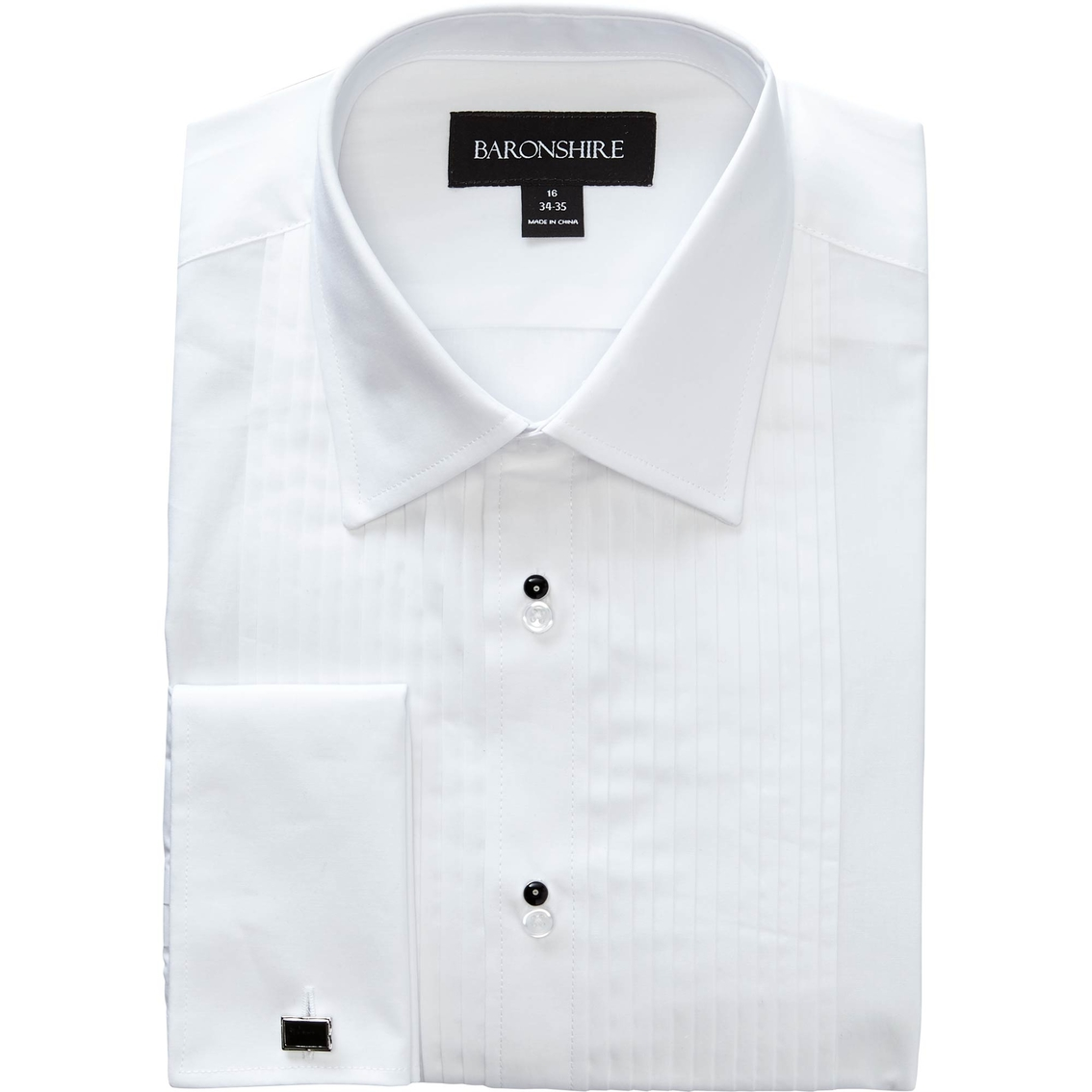 Commercial Men’s White Formal Tuxedo Pleated Dress Shirt. Long sleeve shirt with French cuffs. Style: BAB7FDT100.