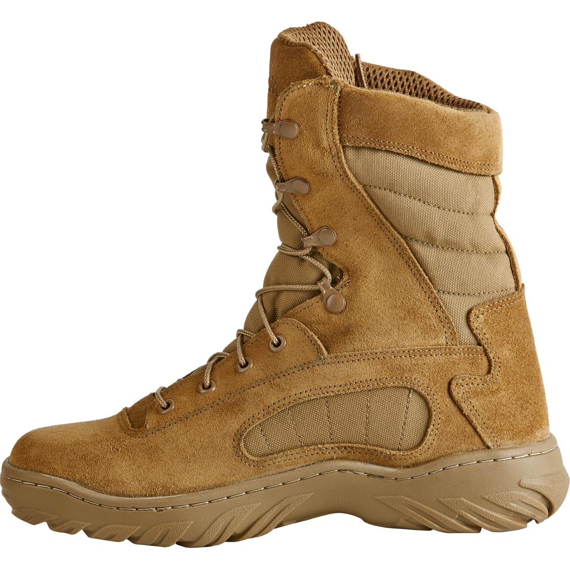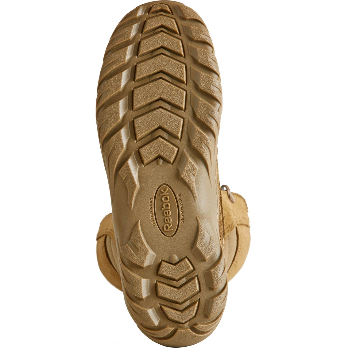 The Reebok Fusion Max with Total Cushioning Technology keeps your feet comfortable over long distances and under heavy loads. The foundation of Total Cushioning Technology is a durable RECON rugged polyurethane outsole with a shock absorbing inner core. A shock eliminator cushion embedded in the midsole sits just underneath the heel and beneath a gel cushioned footbed. A total of 1.5 in. of cushioning keeps your feet comfortable all day long over any terrain. The durable genuine cattle hide leather and 1000D Cordura nylon upper repels water. The NATO speed lace system allows for easy on-and-off. 100% Made in the USA.
