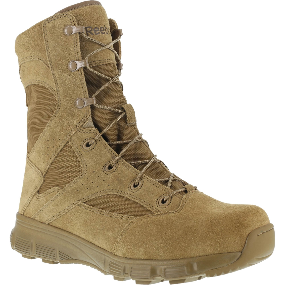 Durable, lightweight and ready to go. Take care of business in these Reebok Dauntless 8 in. tactical boots with TPU Bruise Plate, NATO laces, side air vents and Aegis Microbe Shield antimicrobial moisture-wicking lining. Upper crafted from ballistic nylon and suede leather, tough enough to withstand wear and tear. Removable moisture-wicking insole along with rubber heel and forefoot pads absorb the shock from every impact, keeping your feet feeling fresh and responsive with just the right amount of cushion. AR670-1 compliant. Style: RB8822