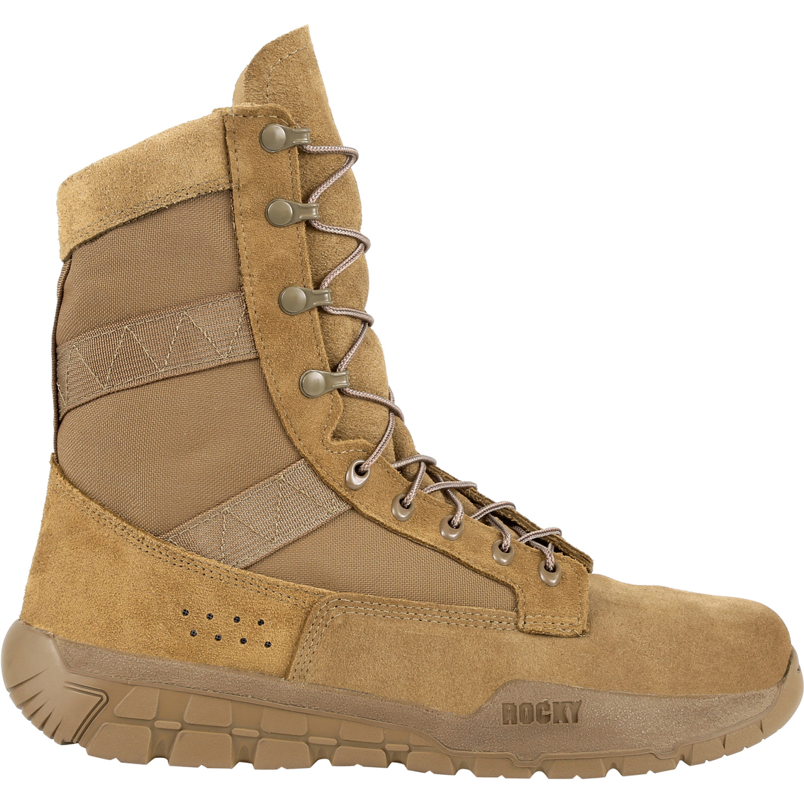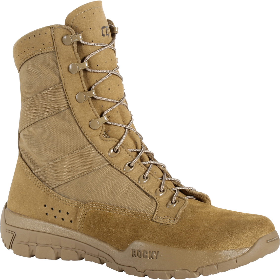 The troop-favorite C4T athletic military boot is back as our Berry-compliant and DA-PAM 670-1 certified C4R. Speed lace eyelets and NATO hooks Vibram soil that is oil, slip, heat abrasion, chemical and metal chip resident DA-PAM 670-1 Uniform compliant Rocky Airport cushion footbed. Water-resistant and fast drying materials Fiberglass shank and no-metallic Berry Complaint. Style: RKC108.